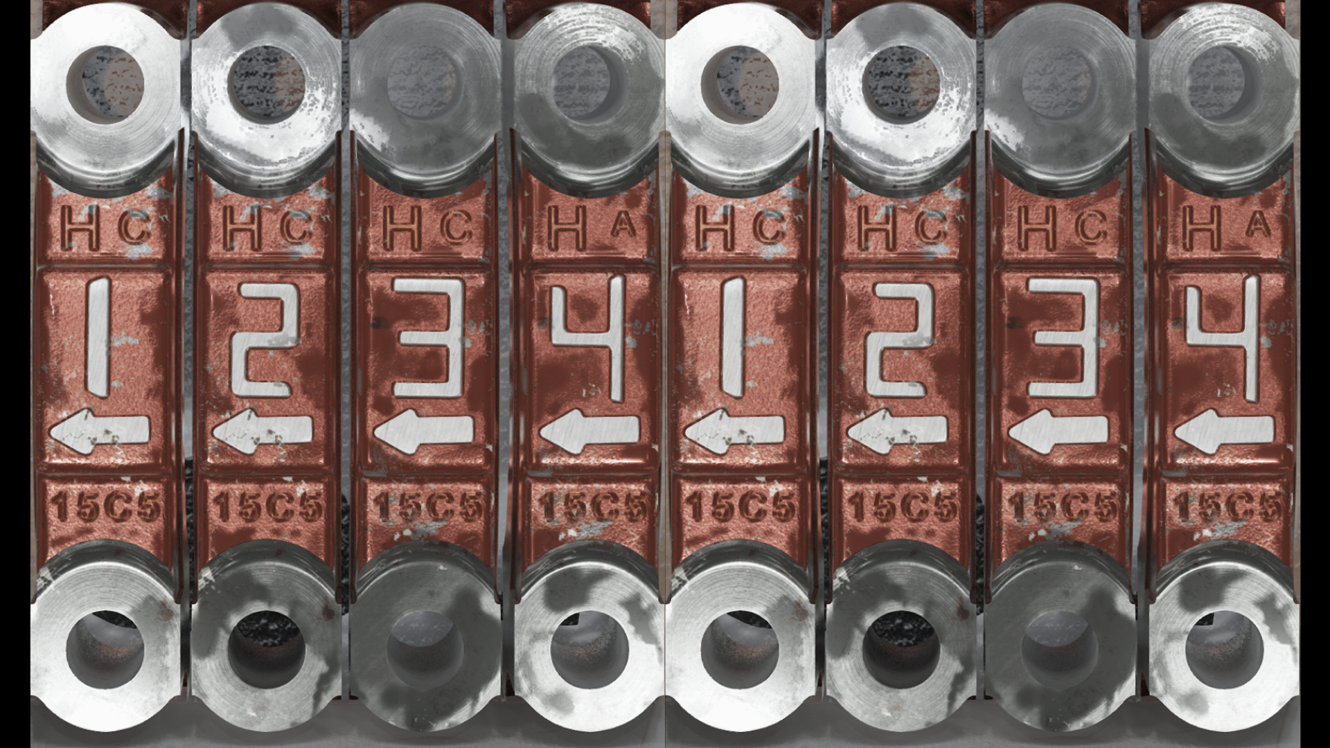 • The consistent orientation with arrows pointing to the left